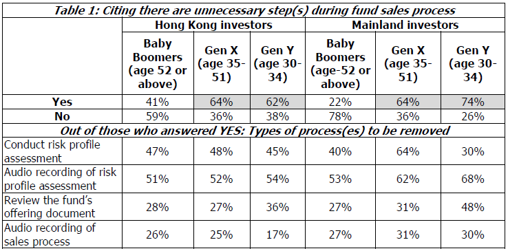同樣,54%的內地投資者認為可以取消某些步驟,大多數人認為風險評估的錄音是多餘的。